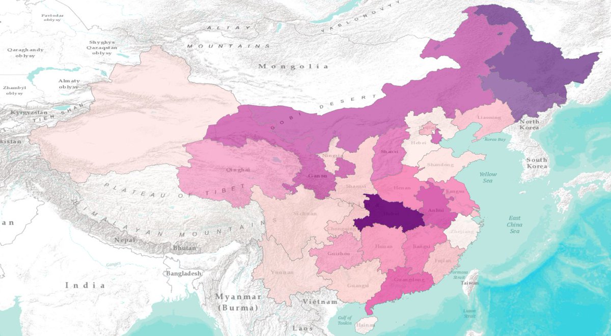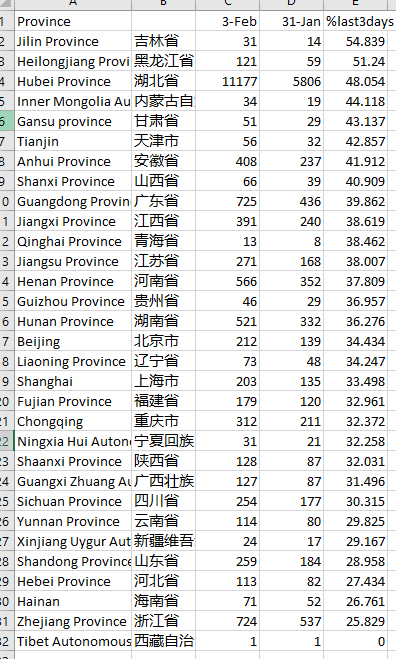 Map of that percentage of Coronavirus cases in each province have been newly reported (so far) in Feb. Data here too. 51% of all the cases in Heiliongjiang are new since Jan 31st, 48% of cases in Hubei are new.pic.twitter.com/5TeXglUa5e
