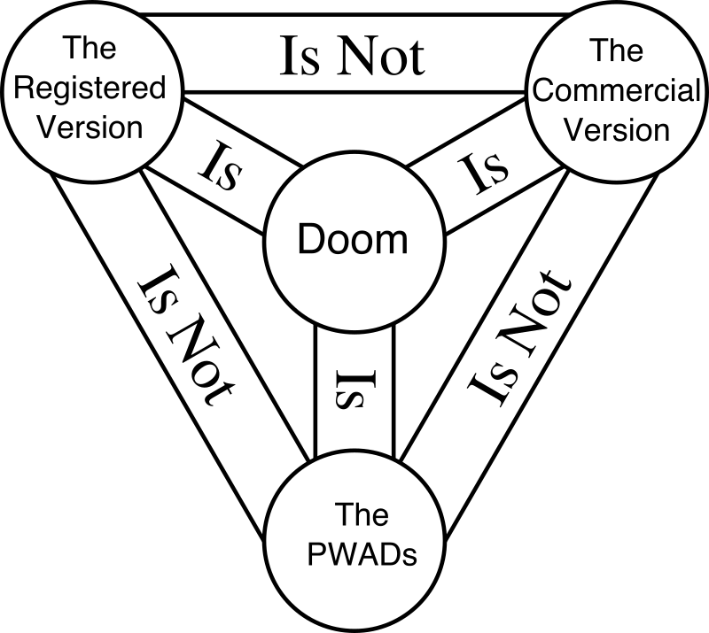 Doom is one Doom, but three coeternal consubstantial games or hypostases—the Doom, the Commercial Version (Doom 2), and the PWAD—as "one Doom in three Divine Packages". The three Games are distinct, yet are one "substance, essence or nature" (homoousios).pic.twitter.com/oHOakwiuRu