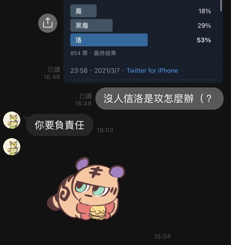 等一下下喔⋯原來NG你自己也投那個嗎😂😂 要是連親爹都倒戈這樣我以後怎麼跟人家說洛洛是攻(?