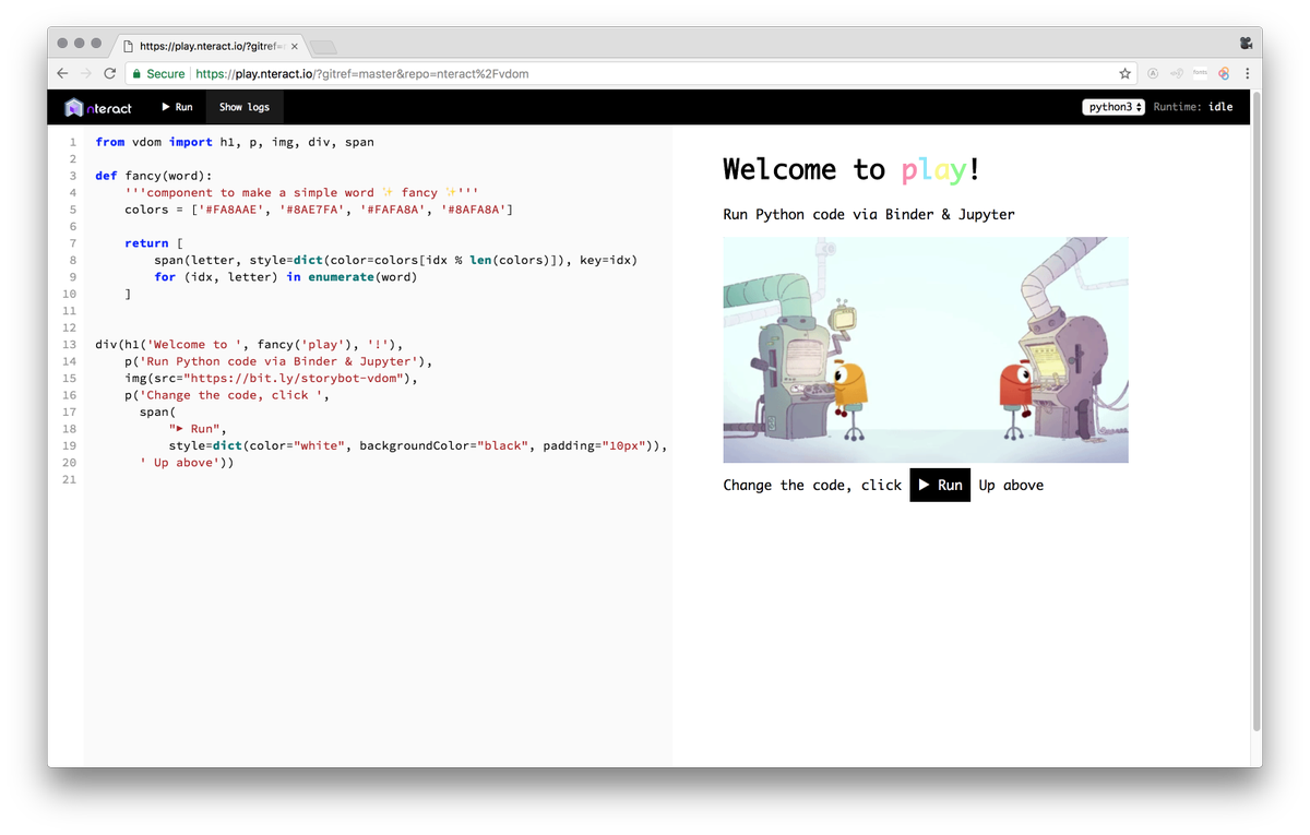 New release of http://play.nteract.io ! When you build with a custom repo and ref on @mybinderteam, you get a sharable URL. pic.twitter.com/fsEoHTl1Md