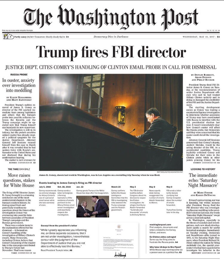 the firing today confirmed that this is at least as big as Watergate. #trumprussia #ImpeachTrump