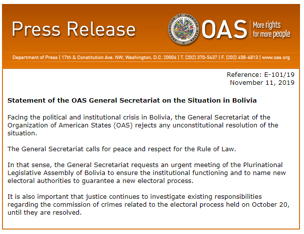 #OAS General Secretariat on the Situation in#Bolivia#OEAenBolivia http://bit.ly/36RzRLq pic.twitter.com/38ur1lChlT