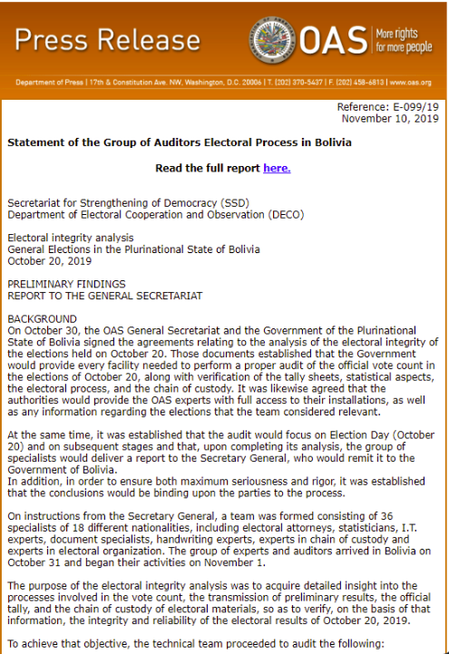 #OEAenBolivia Statement of the Group of Auditors Electoral Process in#Bolivia http://bit.ly/2NBAcud pic.twitter.com/7CS9OaVFOu