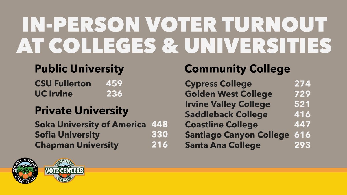 The November 2020 General Election Results are Certified! 87.3% of Orange County’s 1.7 million voters cast their ballot, which is the highest voter turnout since 1964. For more info, visit http://ow.ly/sxZ550Cvfpn