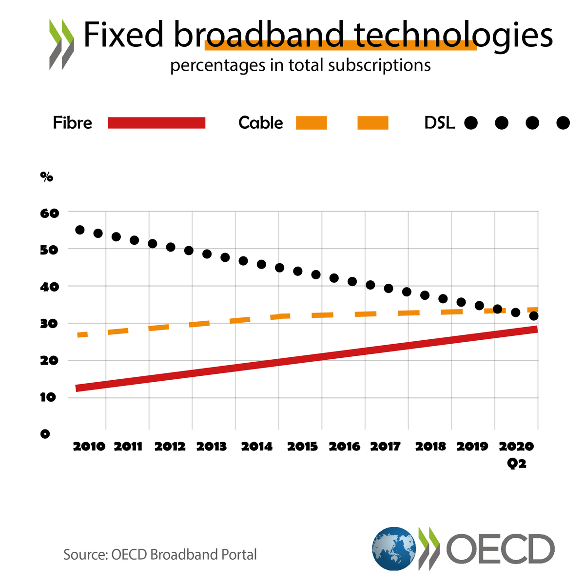 #DidYouKnow that the share of fiber in all fixed broadband subscriptions in#OECD countries rose to 29.2% by June 2020, up from 12% ten years earlier? Learn more