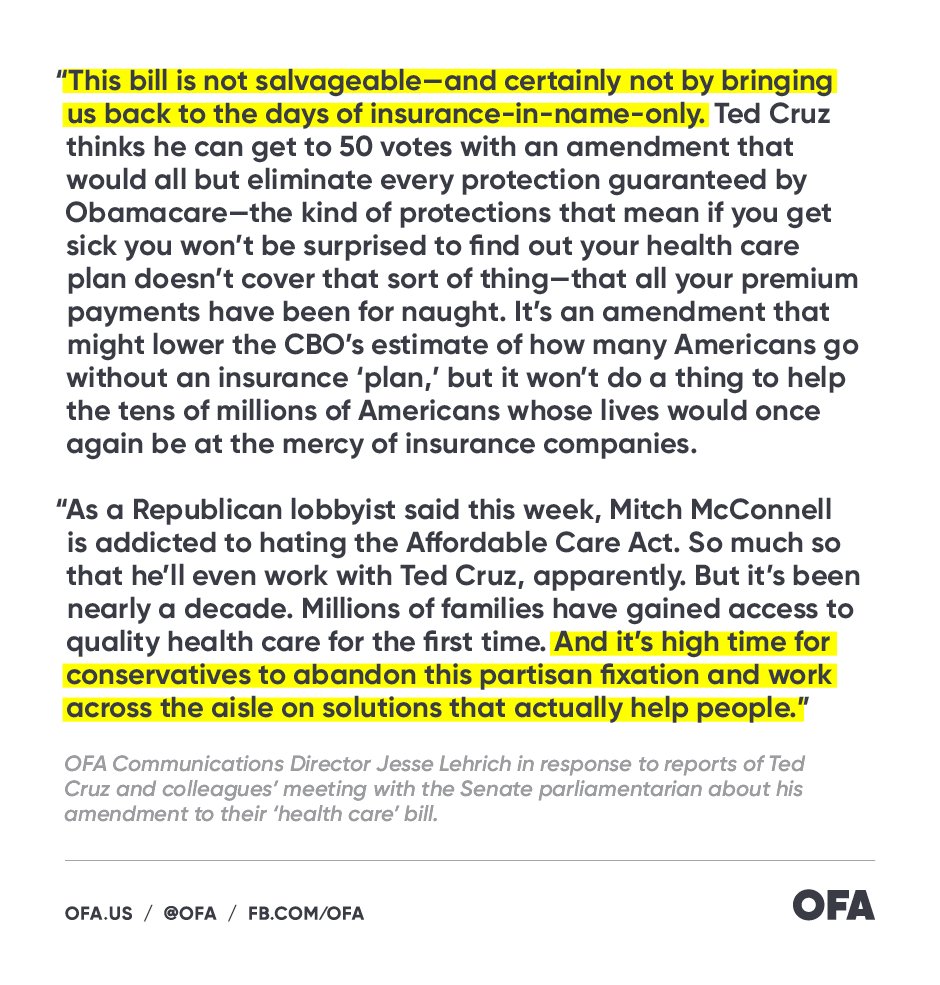 Read OFA's statement on Sen. Ted Cruz's proposed amendment to the Senate's disastrous repeal bill:pic.twitter.com/WFTvrAGqTy