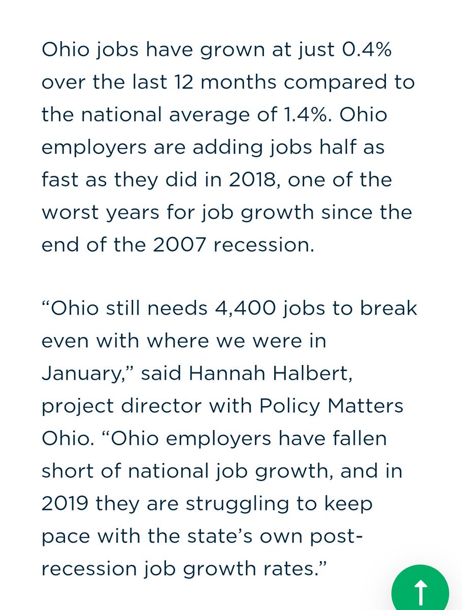 Ummm hate to break this to you, Bob, but Ohio has lost 4,400 jobs since January. https://www.policymattersohio.org/research-policy/fair-economy/work-wages/job-watch/job-growth-returned-to-ohio-in-november-unemployment-rate-unchanged …pic.twitter.com/APvQCFXnqo