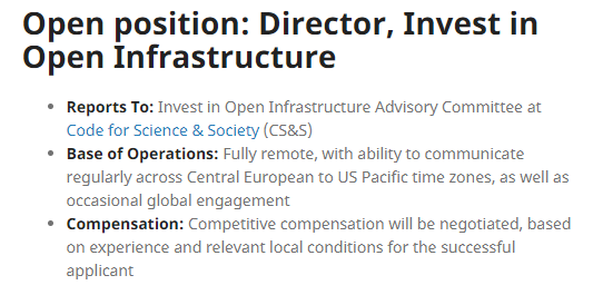 @InvestinOpen is looking for a director to lead their effort to enable durable, scalable, and long lasting open scientific and scholarly infrastructure to emerge, thrive, and deliver its benefits on a global scale https://buff.ly/2O5klmF#openscience#opensourcepic.twitter.com/DnJeNS5DTs