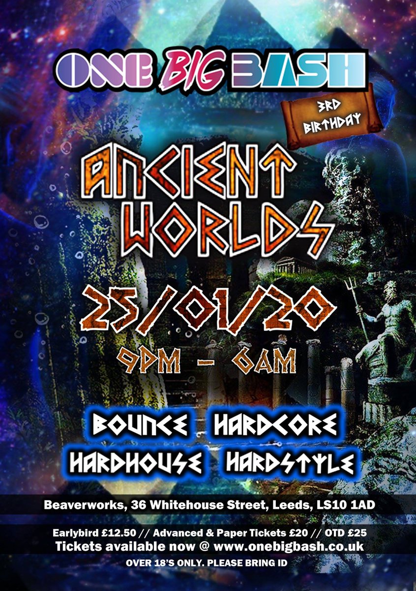 ONE BIG BASH Ancient Worlds beaverworks_leeds #Leeds#Rave#Bounce#UKHardcore#HardHouse#Hardstyle Tickets available on@skiddle and our website