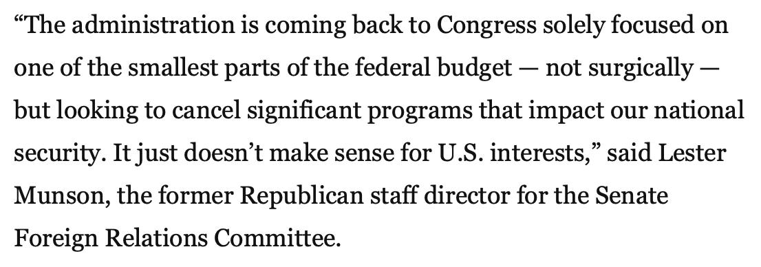 This quote is spot on. The Office of Management and Budget is trying to circumvent Congress and cut more than $4 billion in foreign aid that helps fight extreme poverty & make America safer. It’s a rare trifecta of bad politics, bad policy and bad optics. https://wapo.st/2OQXBu3?tid=ss_tw …pic.twitter.com/OWbcQ8t5YI
