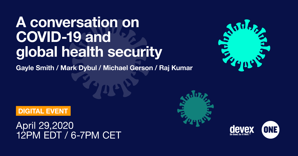 Tomorrow at 12:00pm ET, @ONECampaign CEO @GayleSmith will join @Devex’s @raj_devex, @MJGerson and Mark Dybul for a robust discussion on the #COVID19 global response and the steps the US should take to help the world’s poorest combat this crisis. Register: https://pages.devex.com/one-campaign-webinar.html#CM …pic.twitter.com/C5DLa3D5At