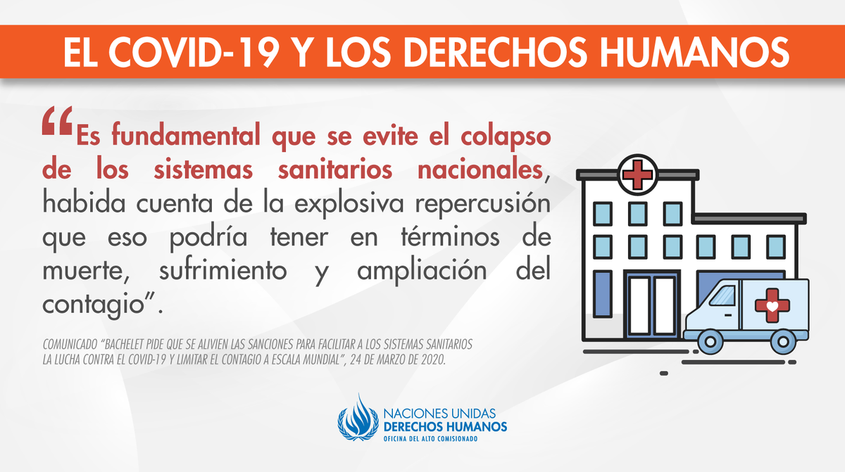#COVID19⚕️ 🔸Las medidas que obstaculizan la atención médica en cualquier país incrementan el riesgo que todas y todos afrontamos - @mbachelet ℹ️Infórmate: https://acnudh.org/bachelet-pide-aliviar-sanciones-para-facilitar-lucha-contra-el-covid-19-y-limitar-el-contagio/ … #StandUp4HumanRights @opsomspic.twitter.com/NWcEqi1fWG