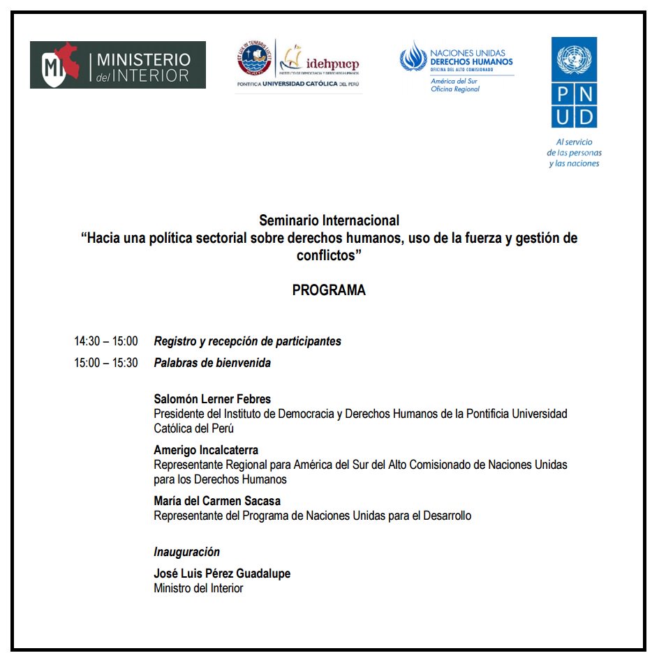 Atención #Perú: seminario sobre #derechoshumanos y uso de la fuerza en conflictos.Inscríbete http://bit.ly/1SWqHmN pic.twitter.com/JVukhBXtP4