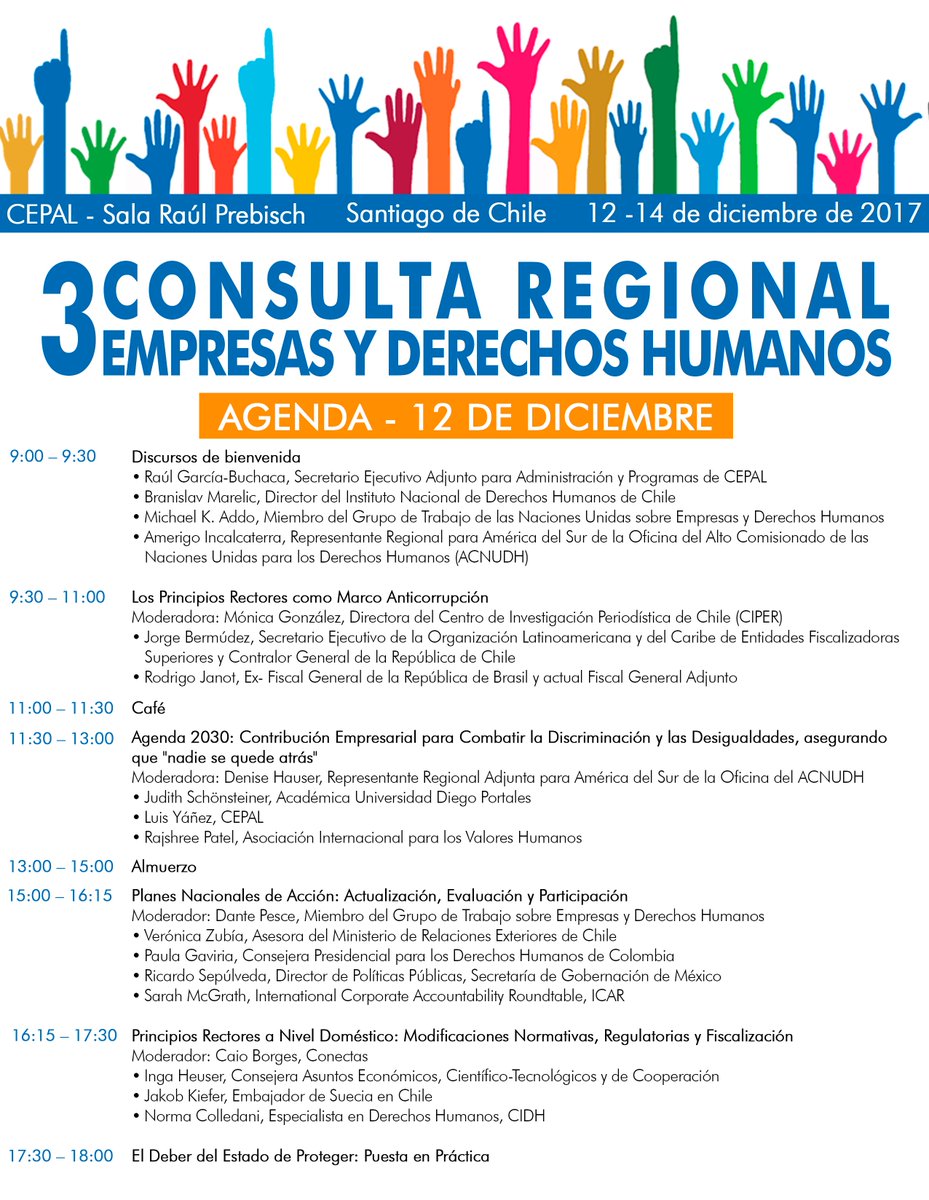 #3ConsultaLAC #EmpresasyDDHH Fiscal brasileño Rodrigo Janot @Rodrigo_Janot y Contralor Gral. de Chile @Contraloriacl, Jorge Bermúdez, conversaron con Mónica González de @ciper en panel sobre "Principios Rectores como Marco Anticorrupción" http://acnudh.org/aviso-de-pautachile-12-dic-inauguran-reunion-onu-sobre-empresas-y-ddhh/ … #bizhumanrightspic.twitter.com/akf15JF5BC