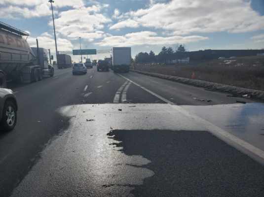 #Hwy407 early this morning in the company truck. Now the 26 year old driver from Brampton will need to ask his boss for a ride