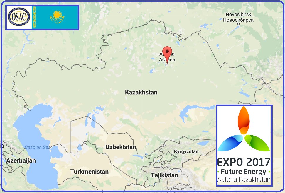 OSAC's latest is a #threat assessment of the Int'l#Expo in#Astana,#Kazakhstan (Pwd Req'd): https://www.osac.gov/Pages/ContentReportDetails.aspx?cid=21552 … …#astanaexpo2017pic.twitter.com/1VnyeeuE9m