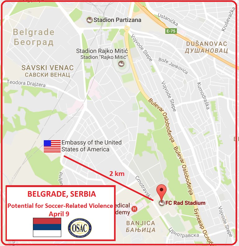 #Serbia Security Message: Potential for Violence at April 9#Belgrade Soccer Match https://www.osac.gov/Pages/ContentReportDetails.aspx?cid=21597 …#RedStar#RADpic.twitter.com/rD5yAknPrX