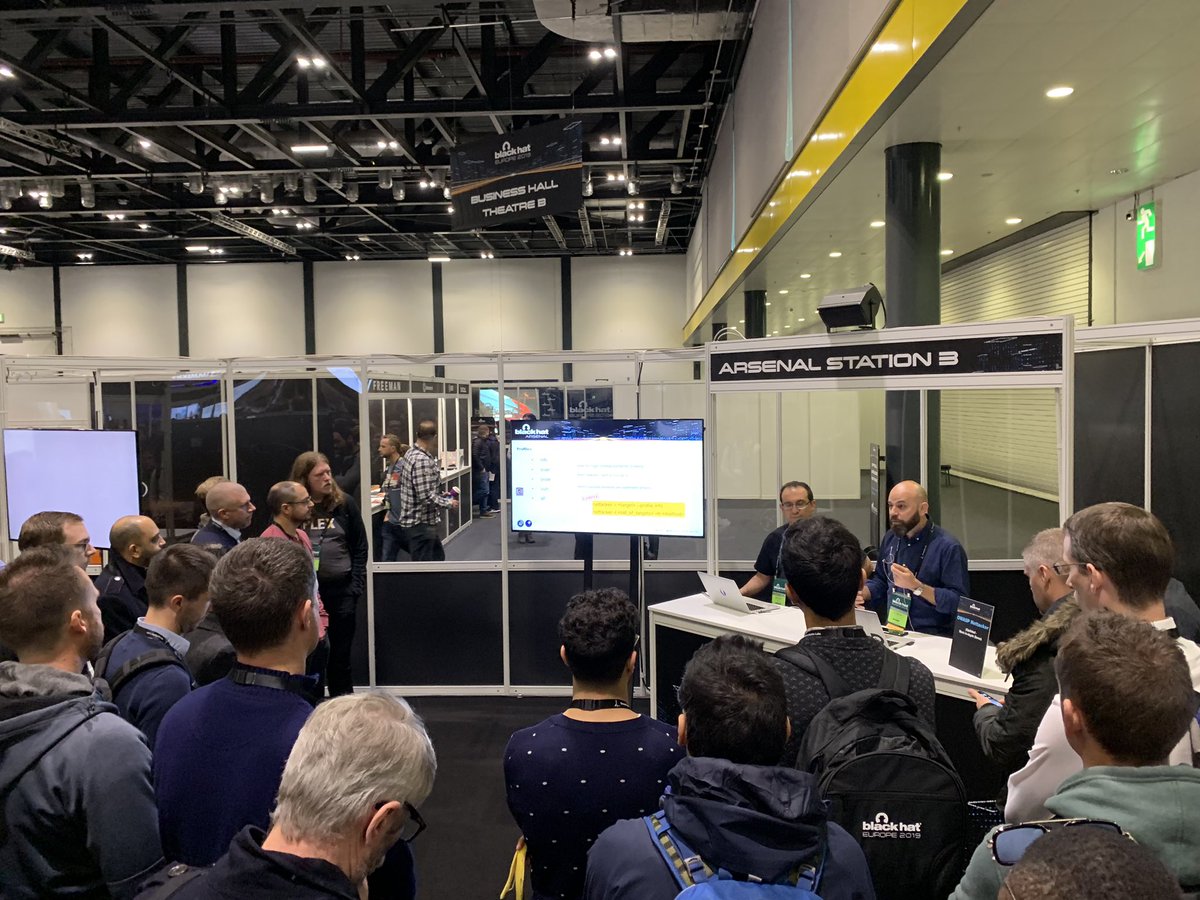 @BlackHatEvents)! Unbelievable number of people turned up to watch me &@theFr0id present and live-demo#OWASP#Nettacker Project (@iotscan) at Arsenal Station 3. Thank you all who came to see this presentation!#OWASPNettackerpic.twitter.com/tRp8WmQnul