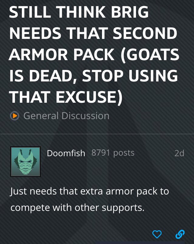 Goats is dead but she would be op if she had two armor packs