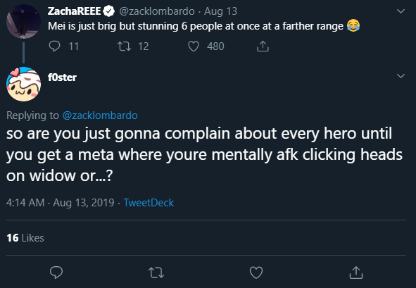 Well considering that he'd probably prefer to play Tracer, Genji, or Hanzo instead of just Mei, I think its valid. I'm sure if you were forced to one trick a hero with no choice of switching, you'd complain too