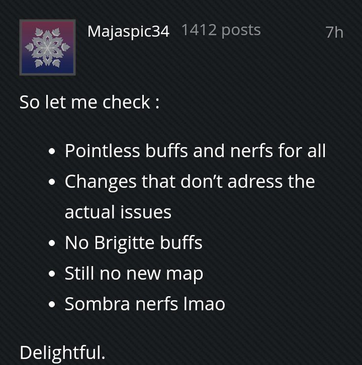 And what are those "actual issues" that need changes? "No brig buffs smh"