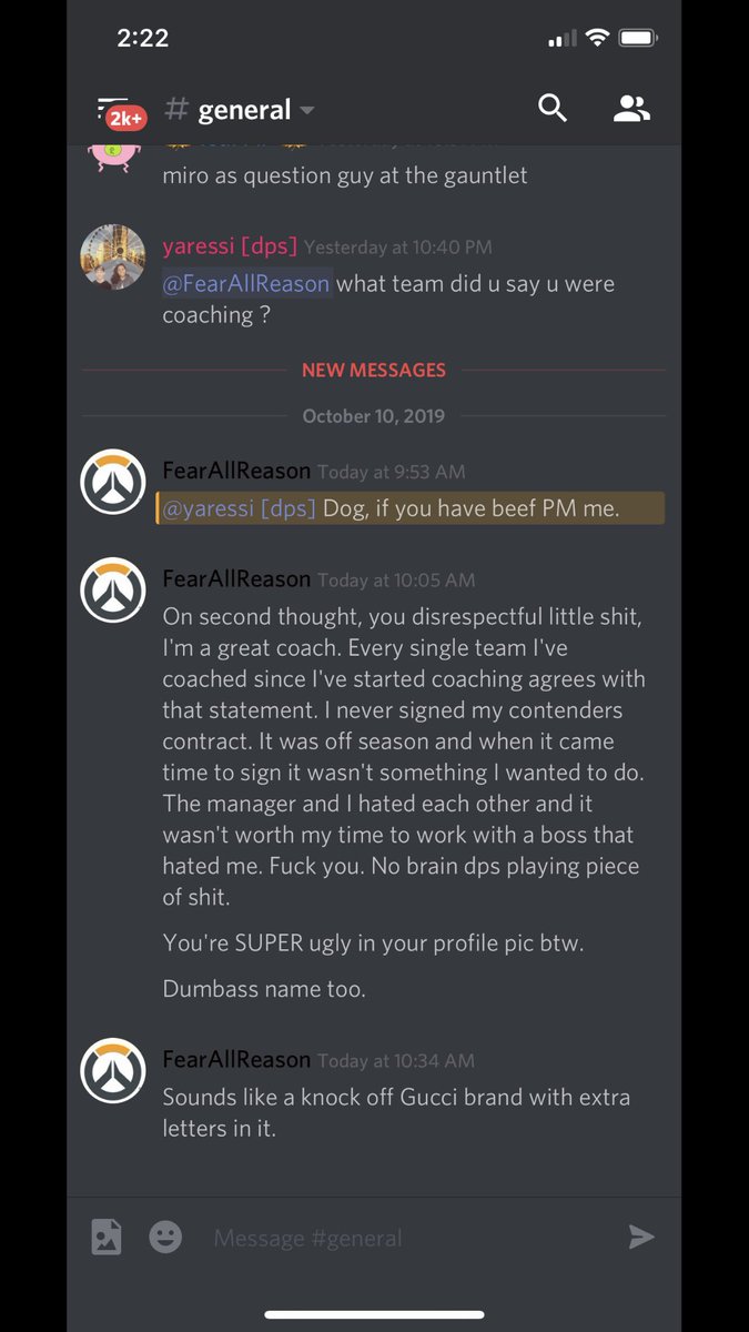 Thank you for bringing these messages into light. We at Reckless hold all of our players, coaches, managers and even trials to a high expectation regarding professionalism. I am incredibly sorry these things have been said. -JacksonLV, Owner of Reckless