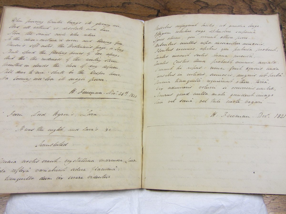 #OnThisDay in 1788, we found Old Oakhamian H. Freeman's work from December 1821: a translation in Latin of Byron's poem "Lara". The book containing pupils' work from the 19th century is one of our favourite items!#LordByronpic.twitter.com/dpZ5HOaY2G