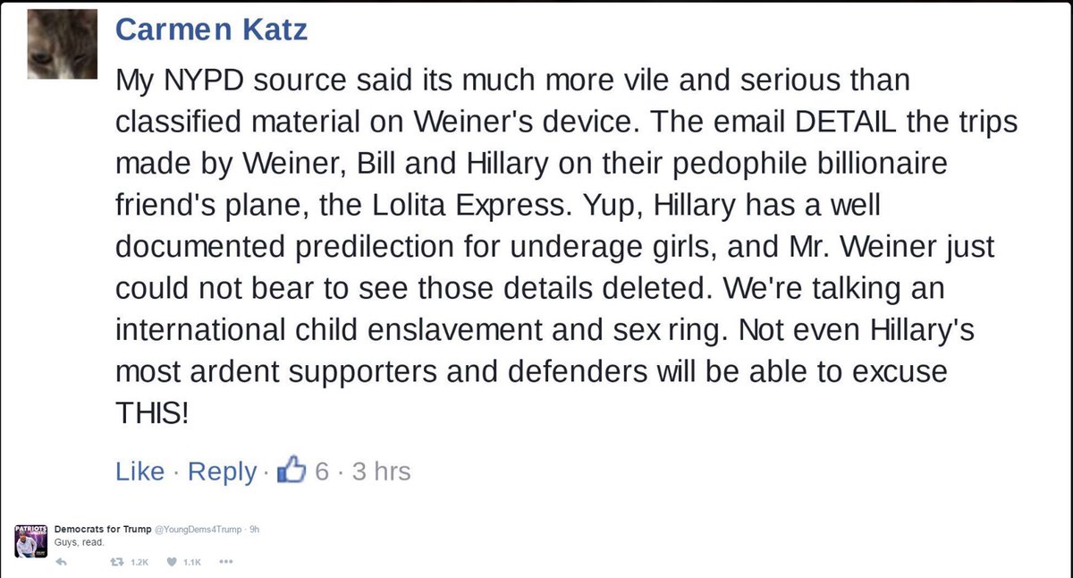 @EricTrump@FoxNews@cnnbrk@CNN TRUTH of Hillary's FBIGate on 10/28/16 is pedophile CRIME, pic & video: https://www.youtube.com/watch?v=kkSEYZ8ZeNM …pic.twitter.com/VcVCnKKrX2