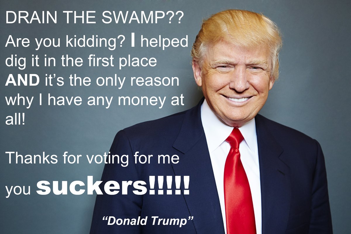 Doubt it! Only thing that's going to happen to the swamp under Trump is that it'll get larger and deeper!pic.twitter.com/iFt9qOCrID