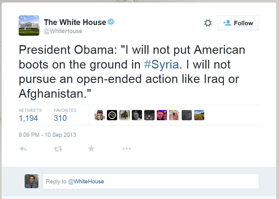 .@WhiteHouse in 2013: We will not put boots on the ground.