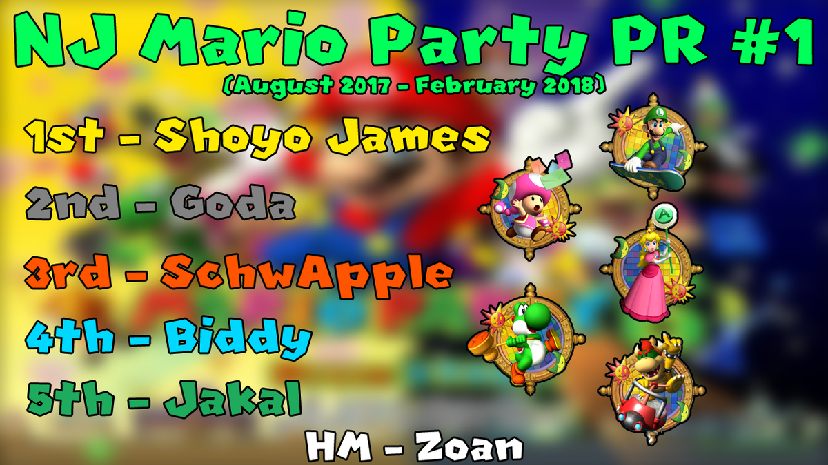 August ~ February NJ Mario Party Power Rankings This is just a basic PR for NJ to get the ball rolling for the official first season, which begins tomorrow @ Collision! Two forms of play will be judged: Singles and doubles results. More information found below:pic.twitter.com/DuotgC618e