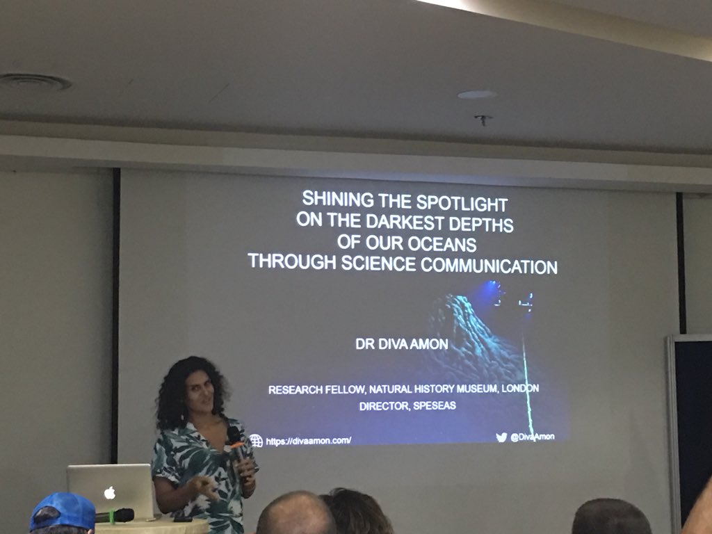 @DivaAmon wrap up#OceansOnline &#IMCC5! She explores what lives in the deep sea & makes great efforts to blen#scicomm into the great science she does! Let’s get schooled in the#deepsea!@OceansOnline@IMCC2018pic.twitter.com/NuXwaosW2Y