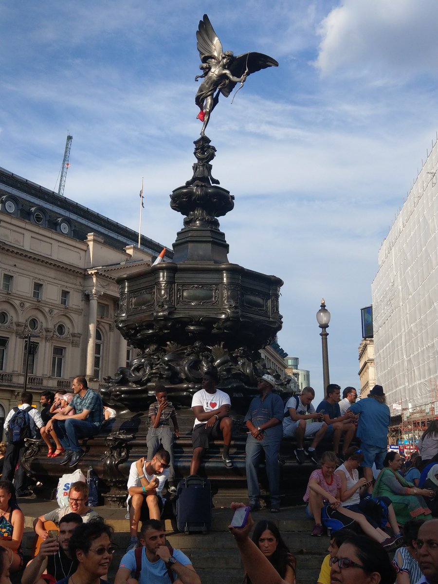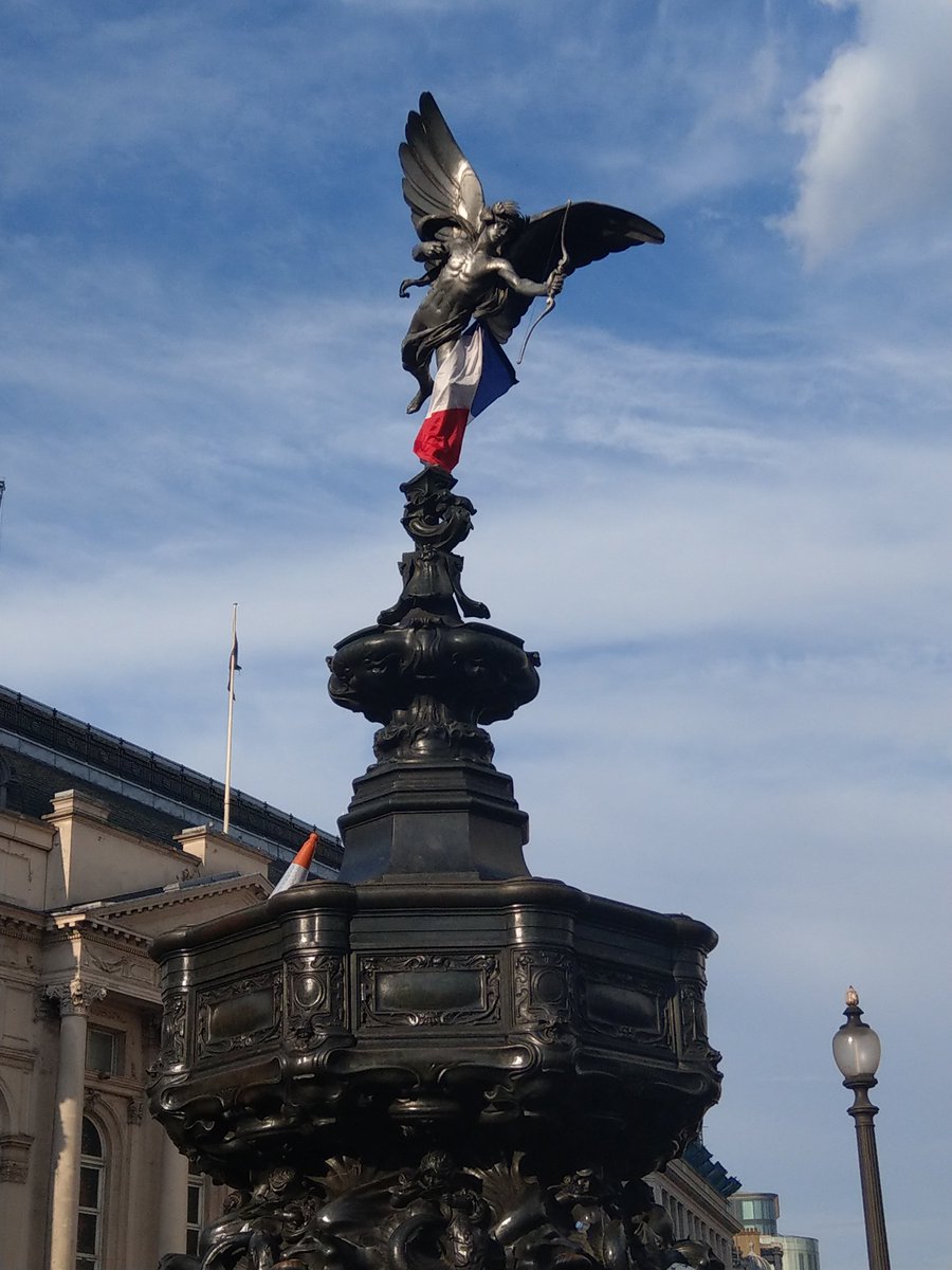 Piccadilly Circus, and the famous statute of Eros' twin brother Anteros. He is wearing a French flag today.pic.twitter.com/cTlNlBMsUp