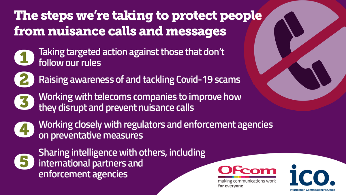 @ICOnews sets out how we will work together to help to protect people in the UK from unwanted calls and messages. Focusing on these five areas: https://ofcom.in/JntActnPln21 pic.twitter.com/mQzYGeErEL