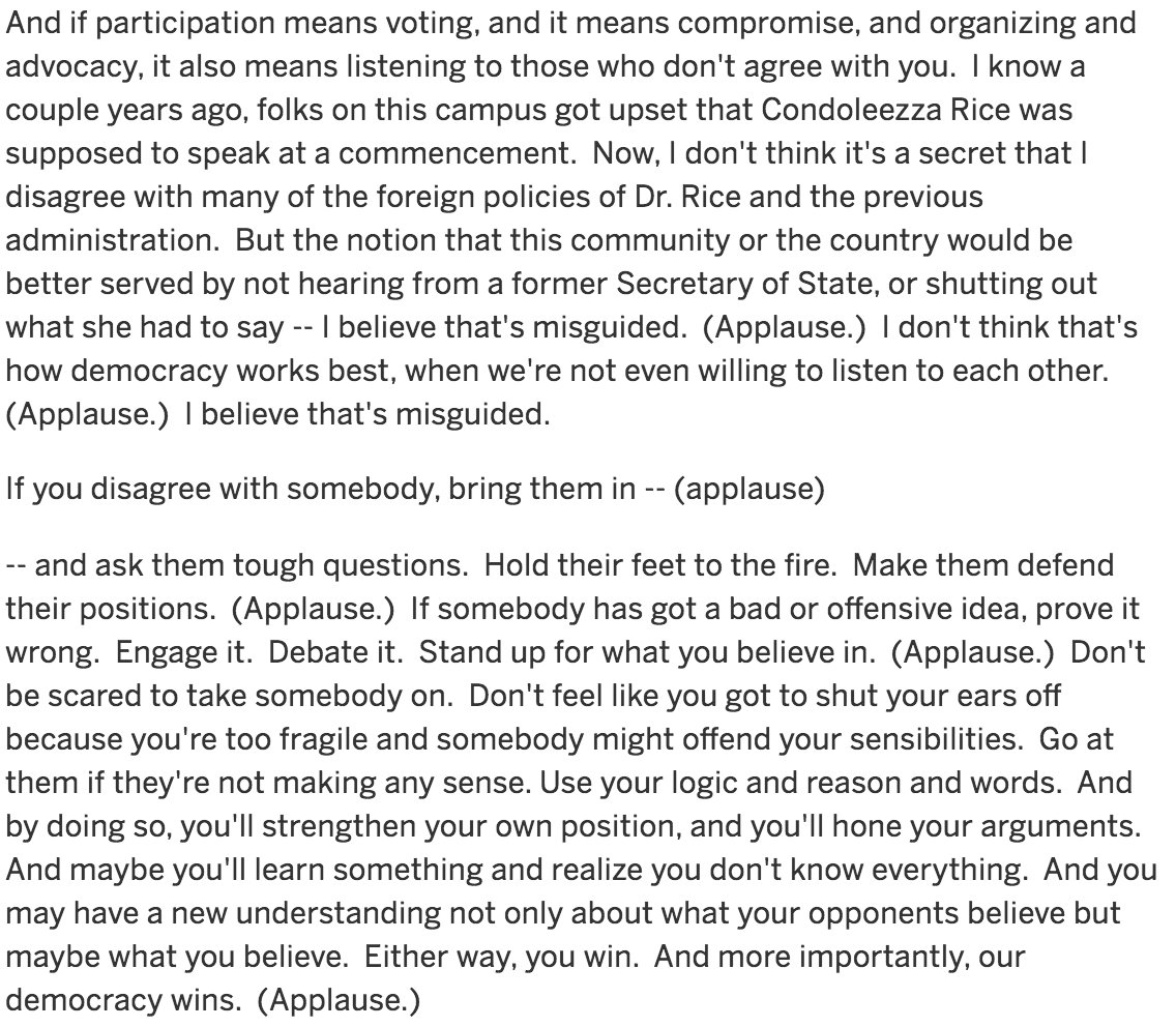 Obama, at Rutgers commencement, chides students for chasing away Condi Rice from speaking https://www.nj.com/news/index.ssf/2016/05/full_text_of_president_obamas_speech_at_rutgers_co.html …pic.twitter.com/kAIrNuNZfx