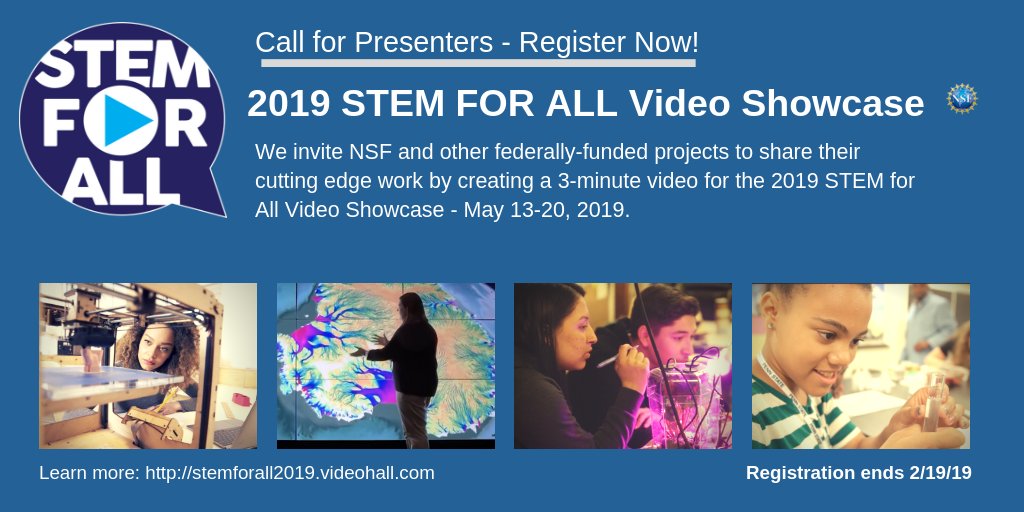 #STEMed project? Register to present in this year's#STEMvideohall by Feb 19 at http://stemforall2019.videohall.com -Don't miss the chance to share your video! Please RT-@nacol@OfficeofEdTech@WallaceFdn@AldaCenter@Education_AIR@LPI_Learningpic.twitter.com/E1YstJ9EoM