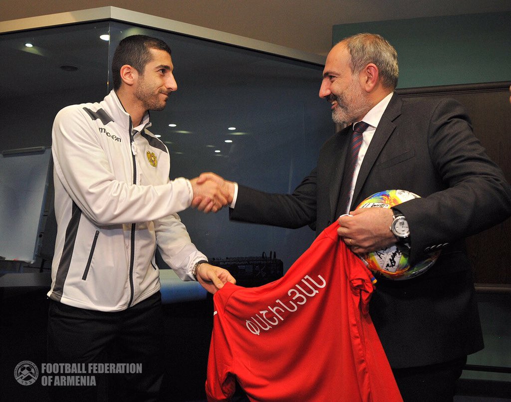 @NikolPashinyan met with#ArmenianNationalTeam players as@HenrikhMkh presented#ArmenianNT jersey and a signed ball to the head of Armenian government.pic.twitter.com/hf8cNcWdga