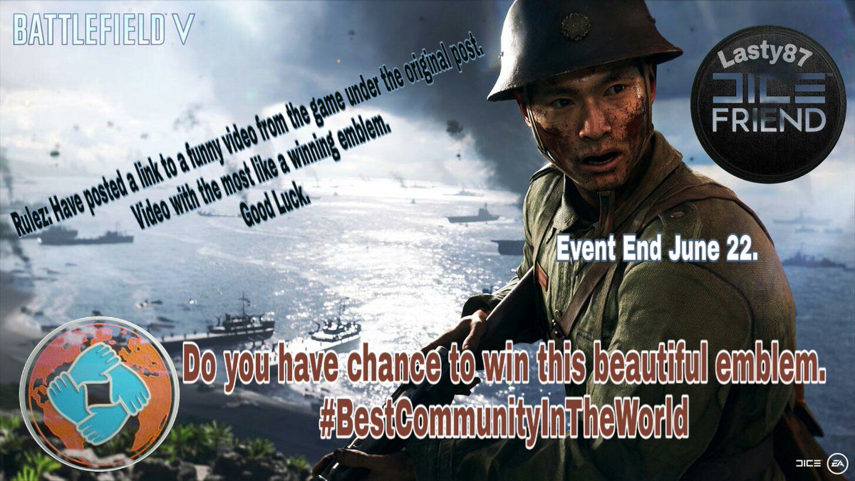 @Battlefield#BattlefieldV friends.. THIS IS YOUR CHANCE HOW TO WIN#BestCommunityInTheWorld EMBLEM. Easy rules on poster..Good luck for All...its a funny time now