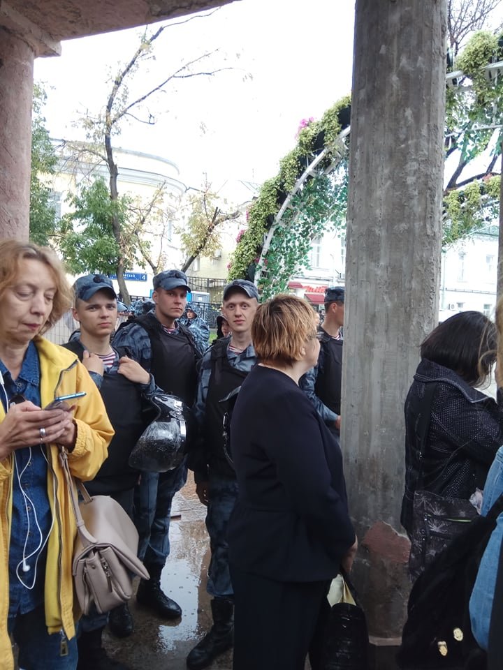 Дождь на Кропоткинской собрал под крышей и вероятных участников собрания и сотрудников Росгвардииpic.twitter.com/irrb5HzgQv