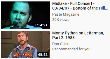 My YouTube sidebar is throwing up alternating Midlake and Monty Python clips and it's hard to distinguish between the two.pic.twitter.com/rqAOiJKaPt