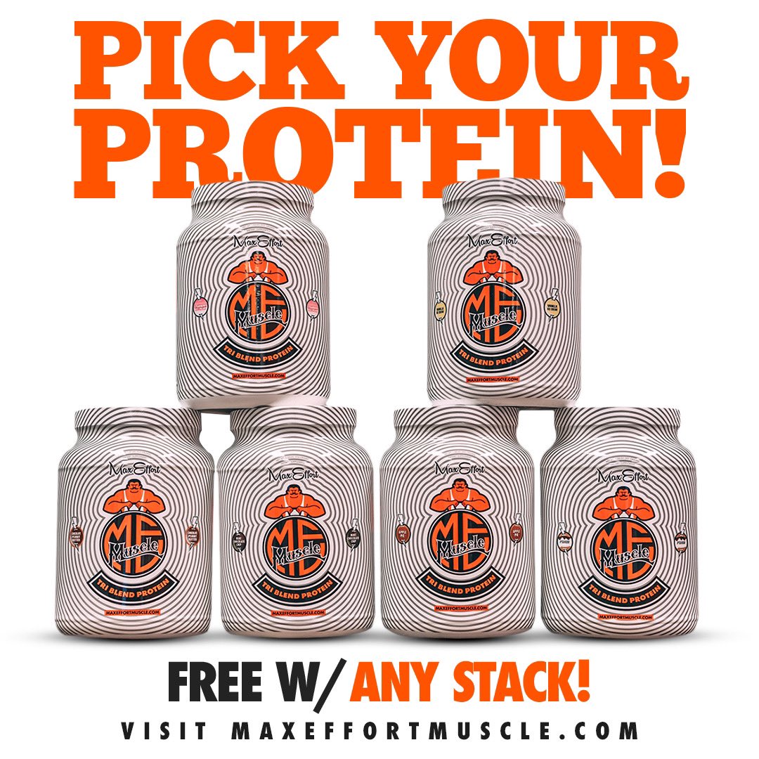 @maxeffortmuscle Tri-Blend protein for free today with your stack order. Stack = any 3 Supps + free swag item (tshirt or shaker) + FREE PROTEIN today only All for $99 http://maxeffortmuscle.com pic.twitter.com/rQaDs09KEz