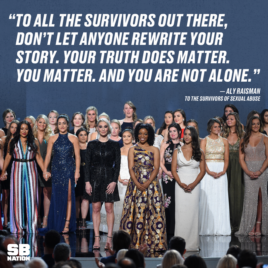 Survivors of Larry Nassar's years of abuse took the stage at the ESPYS for a powerful message:pic.twitter.com/2dPRKyEQib