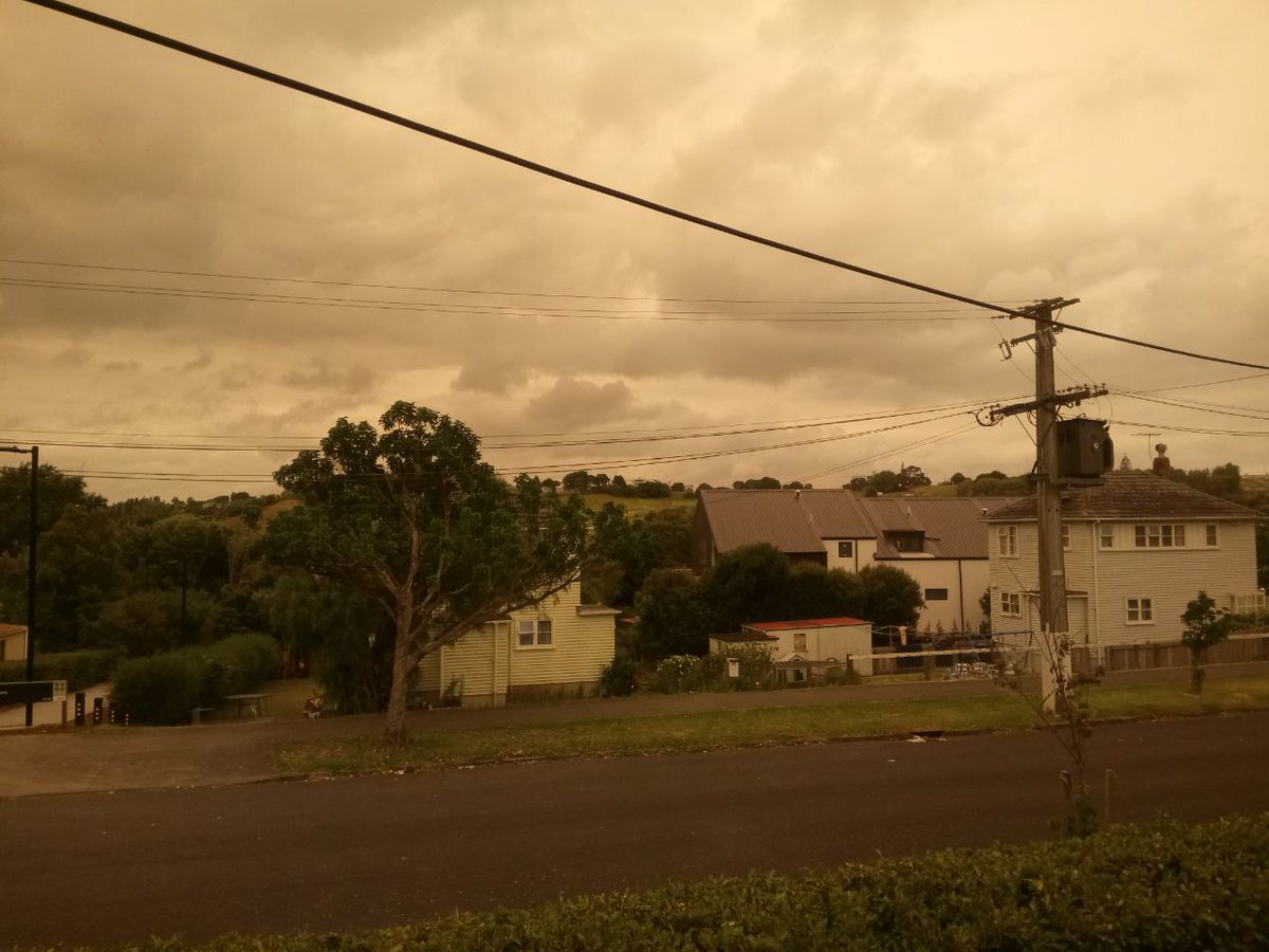 Wanna know how bad the Aussie bushfires are? This is outside my parent's house in Auckland, NZ. That's a 3hr+ flight away. The smoke from the bushfires are coming all the way here. And no, this isn't a camera colour feature.pic.twitter.com/DWKvcI715B