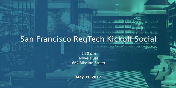 #Regtech enthusiasts! Come thirsty & join us@NovelaBarSF May 31 for the SF RegTech Kickoff Social. http://ow.ly/jKnO30c0RtR pic.twitter.com/Tyu9VfjHOL