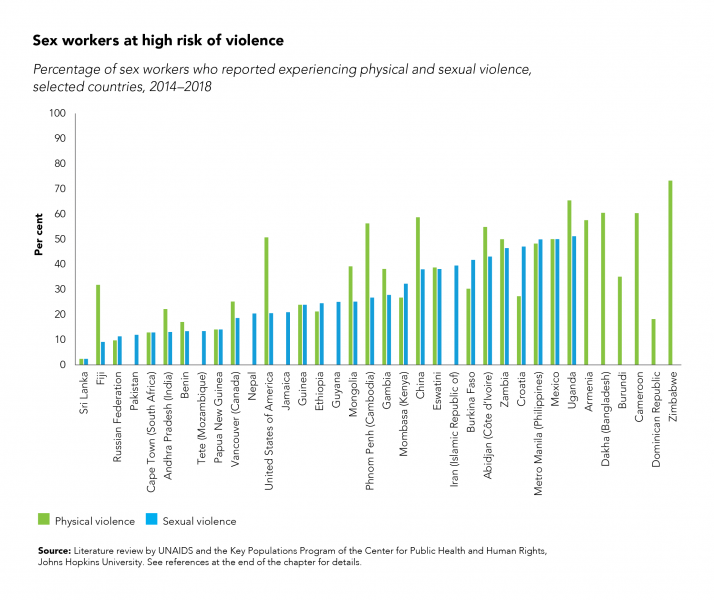 Las actitudes discriminatorias continúan siendo demasiado frecuentes en muchos países. Según estudios y encuestas realizadas en diferentes regiones, alto porcentaje de grupos de población clave son víctimas de violencia física y sexual.