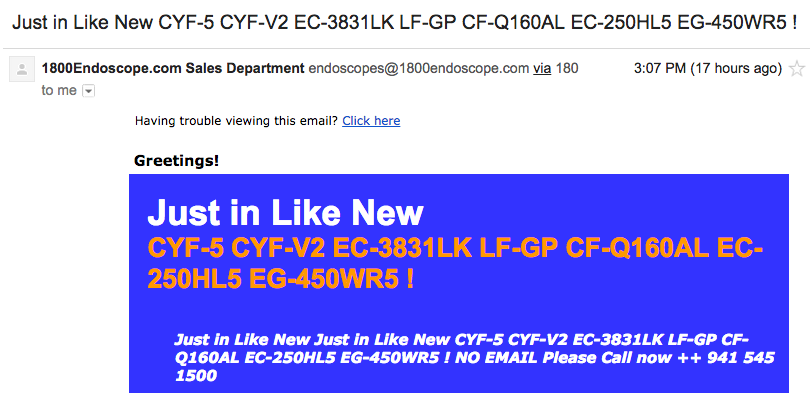 "Like new endoscopy equipment" or "The kind of emails you get when you've helped Nigerians buy things from America"pic.twitter.com/ckggxsRG0r