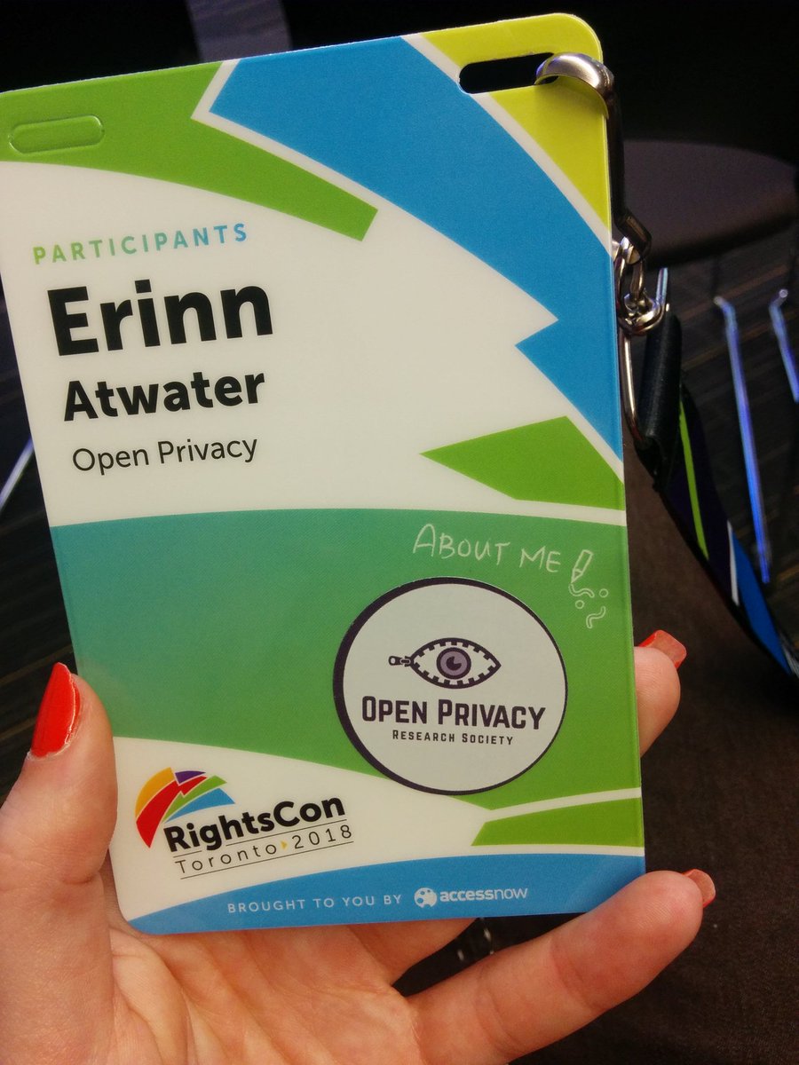 #RightsCon! I'm here repping@OpenPriv! I have stickers