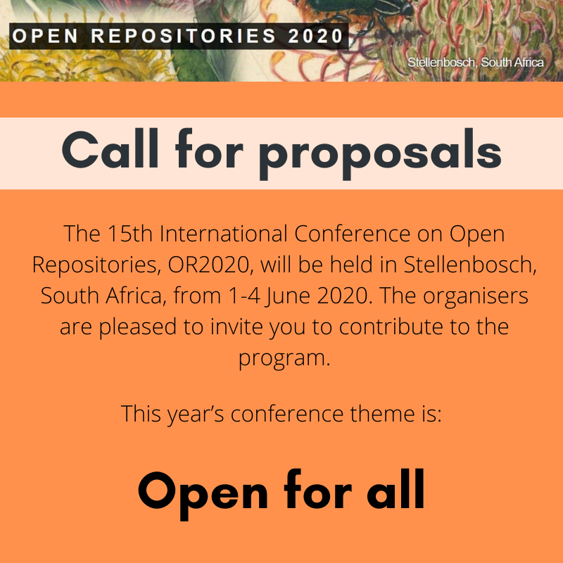 The Open Repositories Steering Committee and the Stellenbosch University hosts have decided to postpone the in-person conference planned for summer 2021 in Stellenbosch, South Africa, and to hold a completely virtual conference instead. Read more on the
