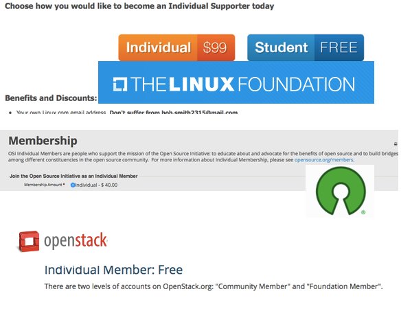 @OpenSourceOrg joining OSI as individual is only $40, joining @linuxfoundation is $99. Joining @OpenStack ? free.pic.twitter.com/BgICTIMSjN