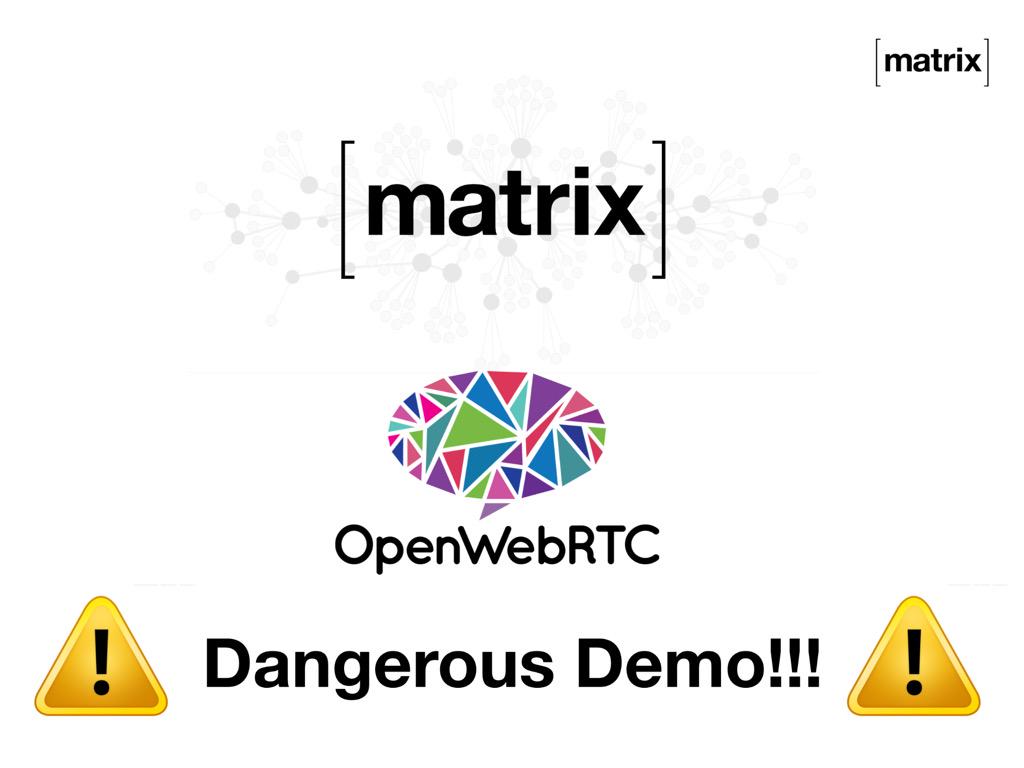 Thanks to the @matrixdotorg team for prepping our joint demo. Excited for the non-dangerous version #WebRTCpic.twitter.com/e8SJOtyGIL